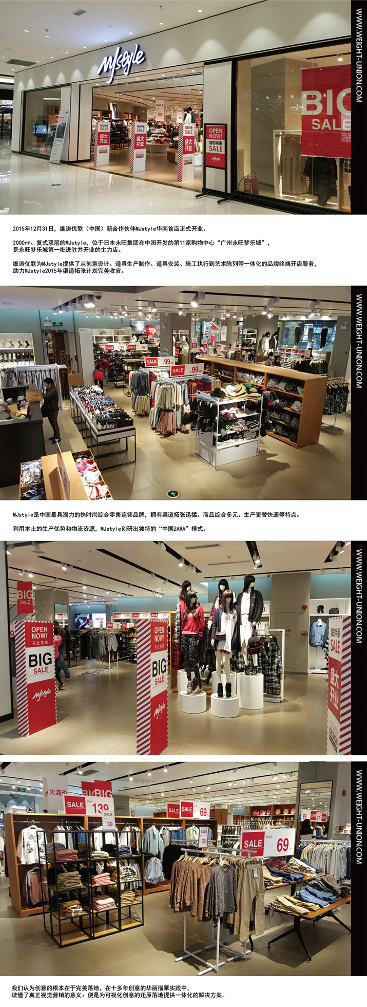 2015/12/31,2000平米復(fù)式雙層的MJ STYLE華南區(qū)旗艦店開業(yè),是MJ STYLE品牌的第100家店,完美收官2015年。
